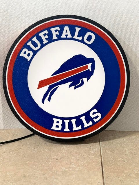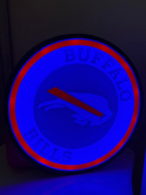 Round out your fan cave with a bold tribute to Buffalo pride. This circular light box packs electric blue and deep red into a clean, symmetrical design that pulses with game-day energy. Built for diehard fans and fantasy war rooms, it’s a fresh take on our classic Bills glow—perfect for shelf displays, desk setups, or gifting your favorite member of the Mafia.
