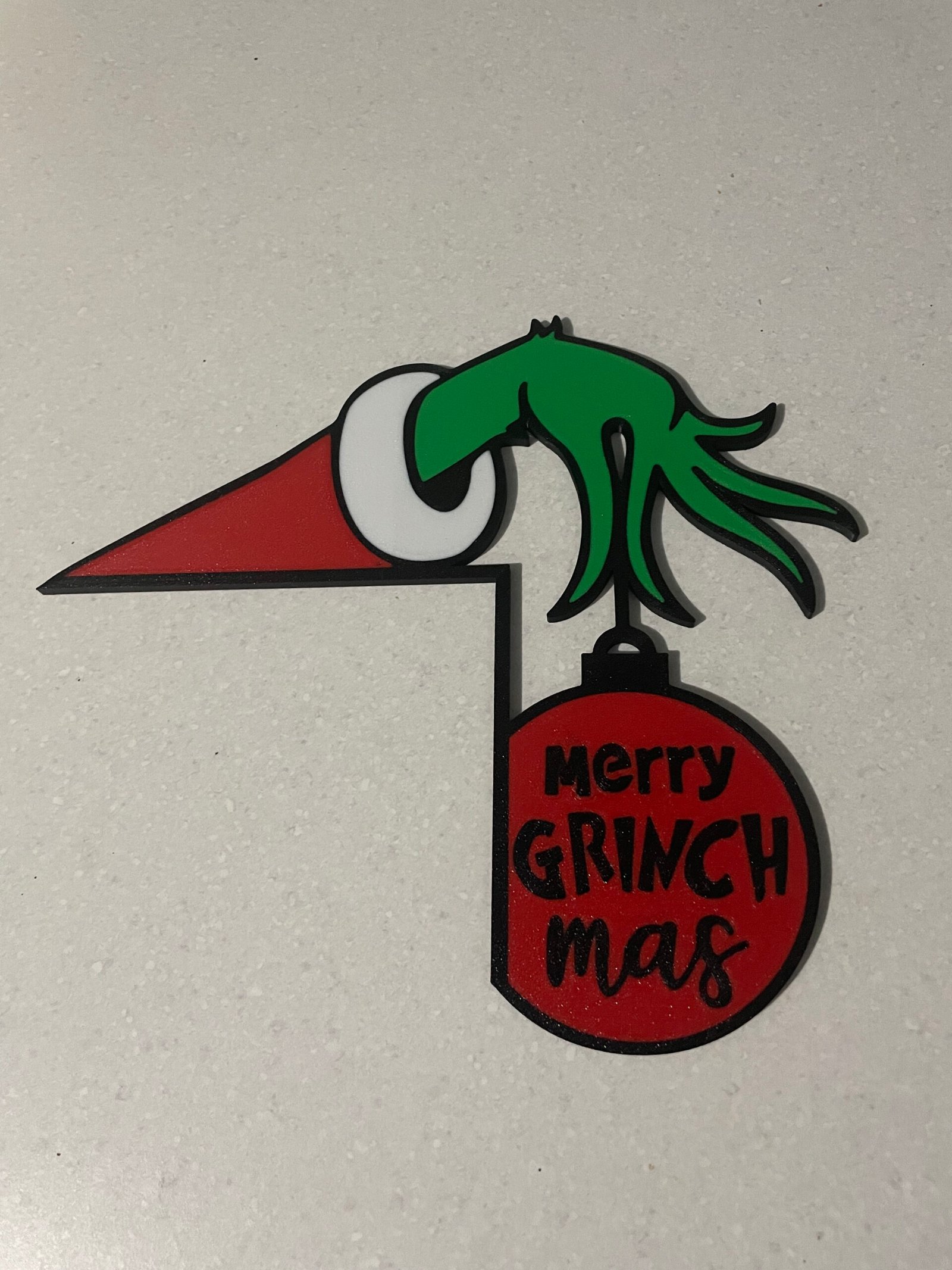This delightful door frame hanger features the iconic Grinch’s hand holding a bright and cheerful ornament that reads ‘Merry Grinchmas.’ Designed with vivid colors and high-quality details, this piece embodies fun, quirkiness, and festive cheer. Whether it’s a statement piece for your front door or a playful addition to an indoor frame, it’s guaranteed to capture the holiday spirit in a charmingly unique way.